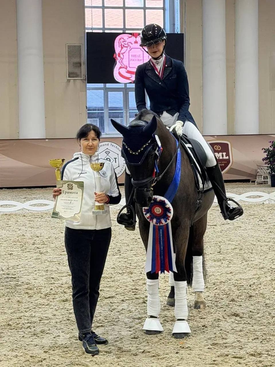 В КСК «Виват, Россия!» Красильникова Юлиса в паре с лошадью Данте Вельтино в категории старшие юниоры (U25) три дня подряд поднималась на пьедестал. В Среднем призе 2 и в Большом призе она заняла вторые места. В самой красивой программе, произвольная программа под музыку, Юлиса завоевала золотую медаль. Приданцева Дарья в паре с лошадью Боливар выступила в категории взрослые, группа Б. В Малом призе и в Среднем призе 1 она заняла два третьих места. В программе под музыку завоевала серебро. Поздравляем спортсменов и тренера Дубинину Ольгу с отличным началом спортивного сезона и желаем дальнейших побед!!! | |