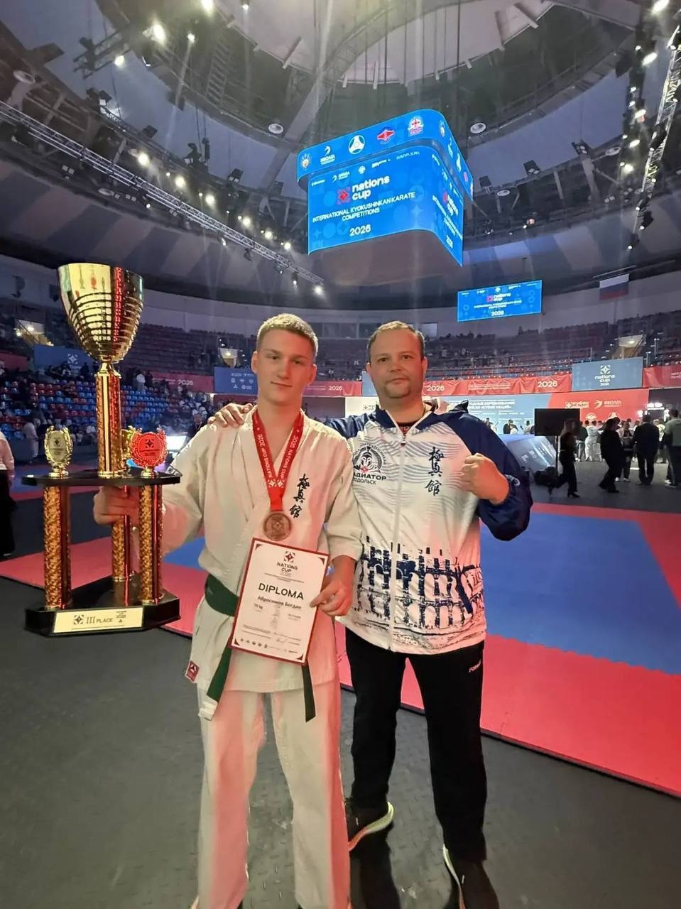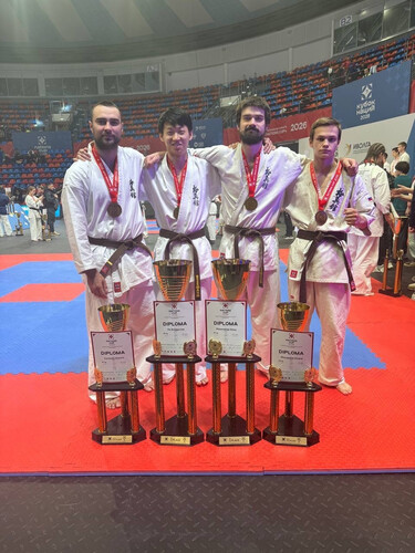 28.02-01.03.2026г. В Москве, в спортивном центре Баскет Холл, завершился III Международный турнир по Киокусинкай «Кубок Наций». Два дня упорных боев на 6 татами, более 1600 спортсменов из 43 стран и 41 региона нашей страны. Спортсмены СШОР «Пахра» ,спортивного клуба «Подольск -Додзё» и школы «Гладиатор» показали хороший результат : 1 Иванников Илья Поздравляем спортсменов и тренерский состав : Аборин М.С., Белышев Д.А., Лукин Н.С., БутриновС.В., Арменян С.А., Горелый Д.П., Иванников И. В., Ишмаметов А. Р., Колесников В.В., Щербаков Е.Л., Кушхов М.Х. с этим триумфом! | |